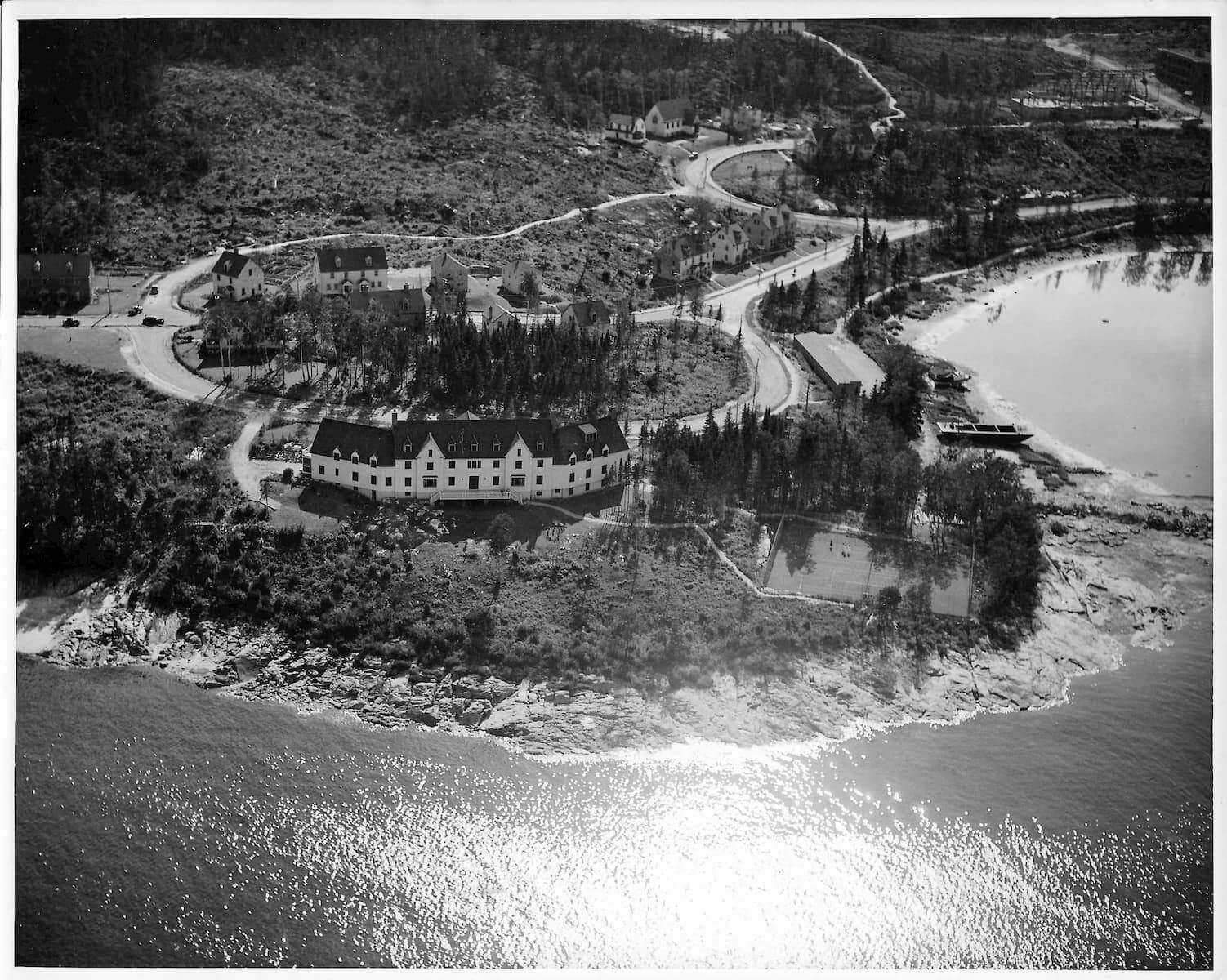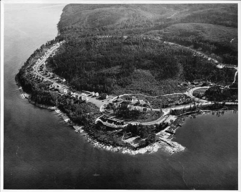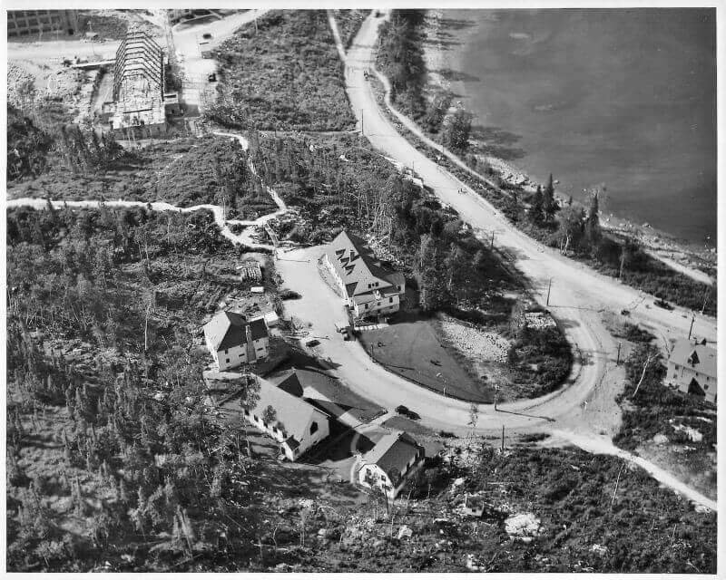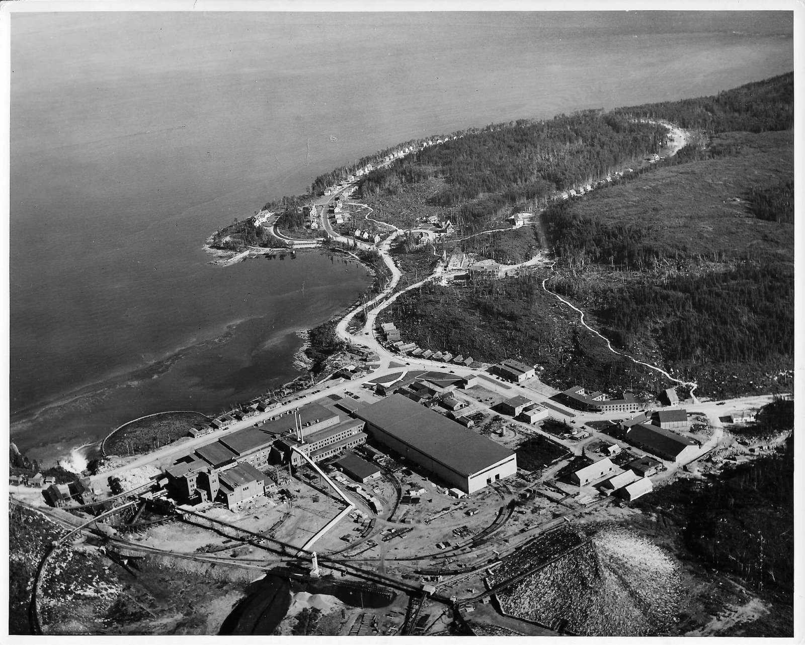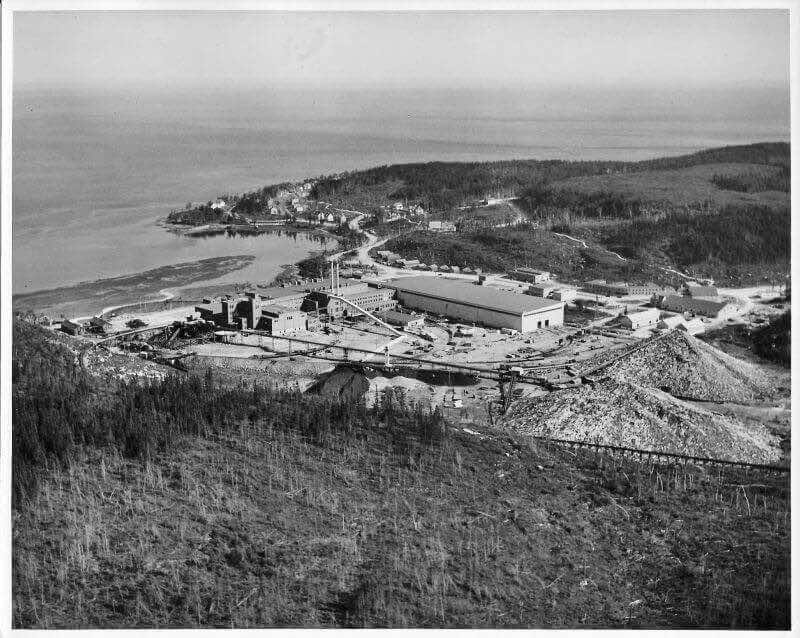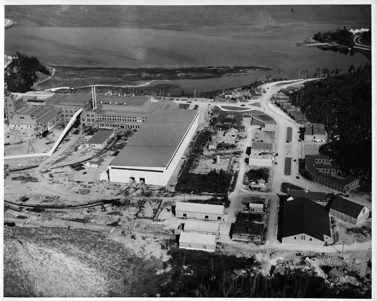 Le 12 avril 1936, le navire Jean-Brillant apporte les cadres et les ingénieurs de la compagnie dans l'anse à Comeau. Le lendemain, le navire Marco-Polo arrive de Rimouski avec les premiers ouvriers et le ravitaillement. La construction débute par les camps des travailleurs, l'amélioration du quai ainsi que la route et le chemin de fer reliant le quai à l'emplacement de l'usine. Le chantier est strictement réservé aux travailleurs. Dû à la situation de pénurie d'emploi, les travailleurs attendent sur le quai de Rimouski pour tenter de se faire embaucher. Il y a environ 1500 travailleurs présents sur le chantier la première année. Dès juin, deux commerces, un barbier et une cordonnerie, ouvrent directement dans les baraques. Au début août, la construction du quai et du chemin de fer est complétée. Le premier bâtiment de la nouvelle usine de papier à être construit est l'atelier mécanique, ensuite la remise à papier, les bureaux, les magasins et la salle de finition. À l'automne, vingt-six résidences privées sont complétées ainsi que le premier manoir Comeau, les rues Champlain et Cartier sont alors créées. Environ 500 travailleurs sont affectés à la construction de la centrale électrique de 75 MW du barrage sur la rivière Outardes et de la ligne de transmission. Le département des opérations forestières, responsable du défrichement et de la planification de la ville, construit un arboriduc entre le lac Comeau et la ville, afin de transporter le bois pour alimenter l'usine.