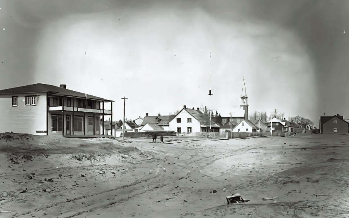 En face du village indien, la Compagnie Girouard de Sherbrooke, avait autrefois construit une scierie, et un village s'était groupé qu'on appelait le Moulin Bersimis. On disait le plus souvent le Banc, parce qu'il était construit sur une accumulation séculaire au banc de sable. Il avait déjà connu une certaine prospérité avec prêtre résident, dont le dernier fut le Père Brézel.