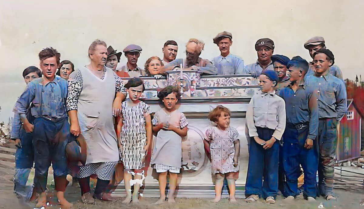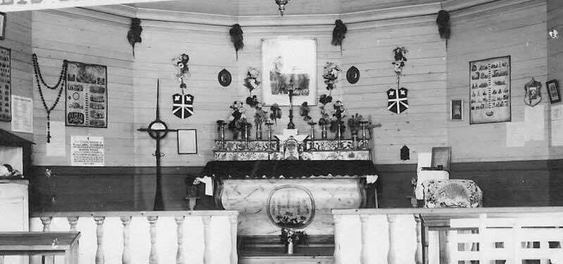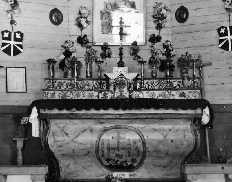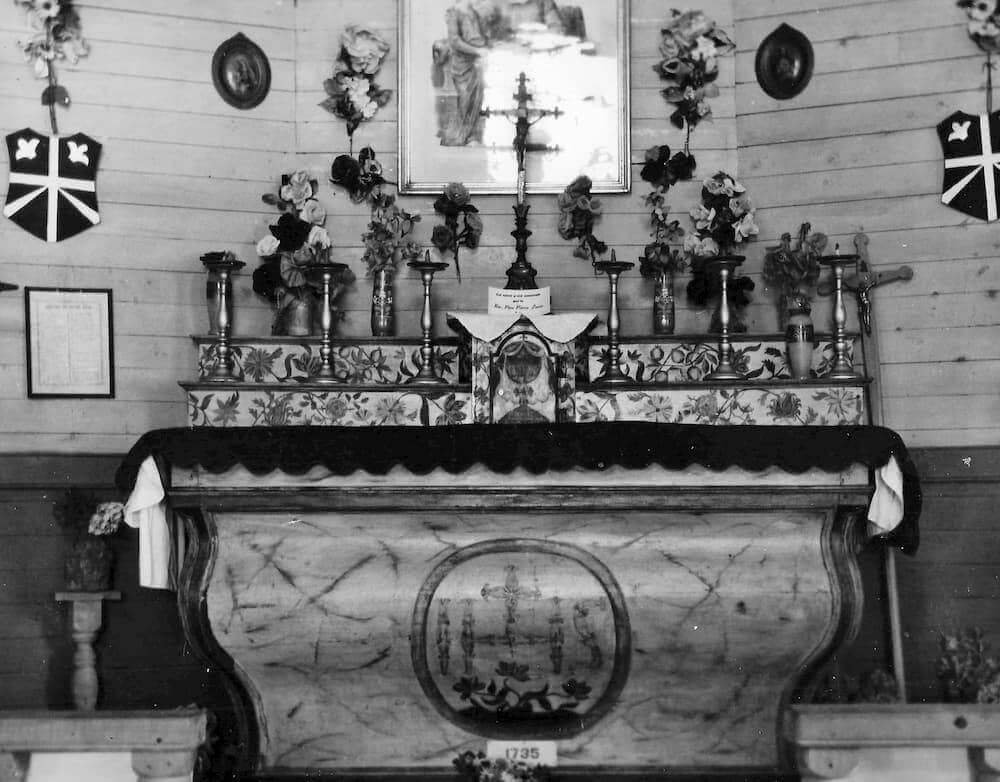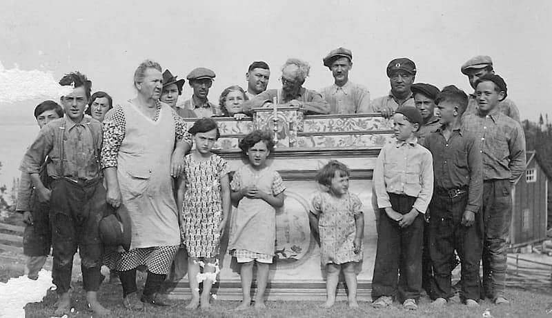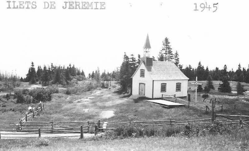 Le 20 août 1938 j'arrivais aux Îlets de Jérémie en chaloupe, celle-ci appartenait à M. Georges Bhérer inspecteur de la colonisation dans le canton de Betsiamites. J'escaladai la colline et entrai chez M. Pit Fortin, patriarche de l'endroit. Le maître de céans me fit les honneurs de sa maison et me fit voir un ancien autel conservé dans une chambrette. Je célébrai la messe. Après la messe on me fit visiter les deux cimetières et l'emplacement de l'ancienne chapelle démolie en 1913. On y voyait toutes les pierres de la fondation et aussi quelques morceaux de lambourdes. Sur l'autel de la chambrette se trouve un vieux crucifix et sur les murs quatre tableaux de catéchisme. Les portes de l'ancienne chapelle servent aux chambres à coucher de M. Fortin et les poteaux de la balustrade sont un peu partout. Ce serait une bonne idée de conserver toutes ces choses dans une chapelle commémorative.