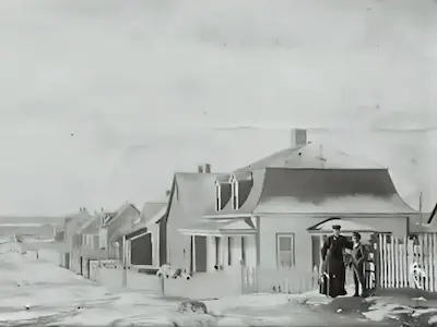Paul-Émile Dominique - Oui, mais je n'aimais pas jouer le rôle de l'Indien, car je perdais tout le temps. Tu vois la pointe là-bas, il y avait une rangée d'habitations, sûrement en écorce. Une église fut bâtie ici à l'époque de Arnaud et Babel. Les Oblats et les Eudistes se battaient pour savoir à qui appartiendraient les Indiens. Leur évêque a tranché et ce sont les Oblats qui nous ont gagnés et qui sont restés.