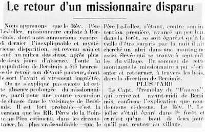 Je ne crois pas qu’il y ait lieu beaucoup de craindre que je me paganise sur la Côte-Nord. Le bon Dieu est toujours aussi près de nous. Nous l’avons sous le même toit que nous et s’il faut un jour aller à travers les montagnes et les fleuves à la conquête des païens, le bon Dieu ne nous refusera pas sa grâce, témoin la vie de saint François Xavier, dont nous faisons la fête aujourd’hui et qui, lui seul, a converti et baptisé 100 000 âmes. Nous n’espérons pas en arriver jamais là pour bien des raisons et d’abord parce qu’au Labrador il n’y a pas la 100e partie de cela à convertir. Mais c’est pour dire que nous pouvons malgré notre isolement nous maintenir dans la ferveur et faire notre salut aussi facilement que nous l’eussions fait en France ou en Belgique.